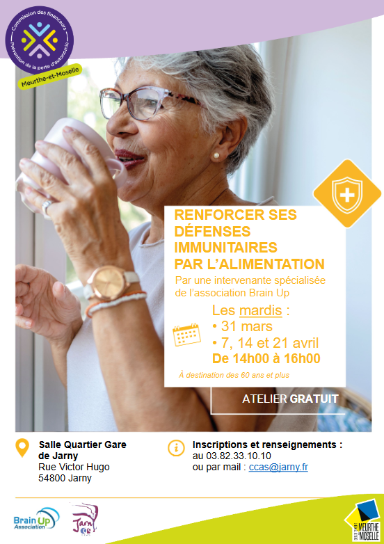 Le CCAS de Jarny organise des ateliers "Renforcer ses défenses immunitaires par l'alimentation" en lien avec le partenaire BRAINUP.
