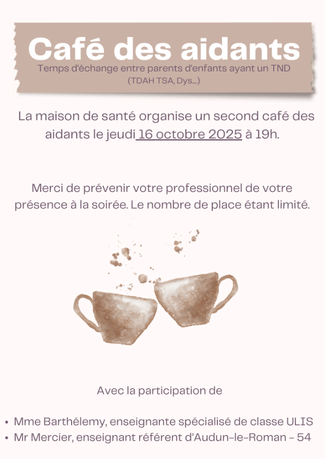 La Msp Audun le Roman organise son second café des aidants, à l'attention des parents d'enfants ayant un TND (TDAH TSA DYS...)