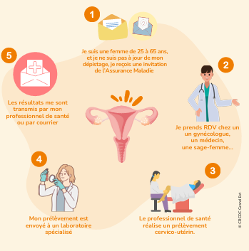 Les femmes âgées de 25 à 65 ans reçoivent une invitation au dépistage lorsqu'elles ne sont pas à jour.